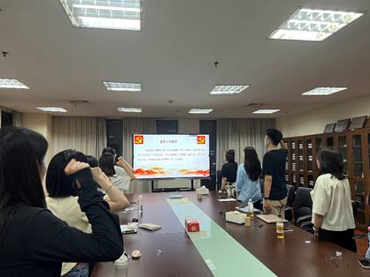 随后,全体党员举行了重温入党誓词活动。在支部书记徐佳老师的带领下,大家面向党旗庄严宣誓,铿锵的誓言回荡在现场,也响彻在每一名党员的心中。
