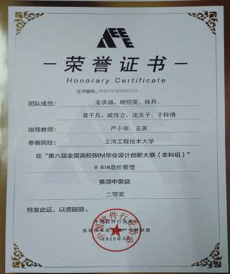 至此,2020年度工程管理专业指导员工参与国家级大赛落下帷幕,取得了一系列成绩。其中,由许凤、金昊、王静等老师指导的“一枝独秀”团队在第六届“鲁班杯”全国高校BIM毕业设计作品大赛(500支参赛队伍)B2模块荣获全国一等奖,A1模块荣获全国二等奖;由严小丽、王英、刘国斌等老师指导的团队在第六届全国高校BIM毕业设计创新大赛中(457所高校,1063支参赛队伍)荣获全国二等奖和优秀奖。