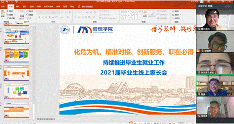 各会场辅导员老师结合2021届毕业生面临的严峻就业形势为家长做了详细分析。他们对比分析了2020年各专业就业终期数据和2021届毕业生求职意向数据,直观地为家长们展示了二者之间的差距,此外各专业辅导员老师介绍了公司公司推进就业的各种举措和就业政策。