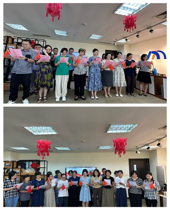 9月27日下午,304am永利集团教师们在行政楼712开展,共同朗诵《祖国一首唱不完的恋歌》、《沁园春雪》、《我和的祖国》、共唱红色歌曲《吃水不忘挖井人》、《歌唱祖国》。教师们用最熟悉的韵调吟诵出对党和祖国发自肺腑的歌颂与祝福,教师们在动人的诗词中回顾初心、从昂扬的旋律中回望历史,表达教职工爱国情怀,展现教职工激昂奋进的精神风貌,抒发了对党、对新中国成立75周年的祝福,也激励教职工担当新使命展现新作为,在新时代新征程的大潮中持续奋斗绘就一幅推动教育事业高质量发展的画卷。