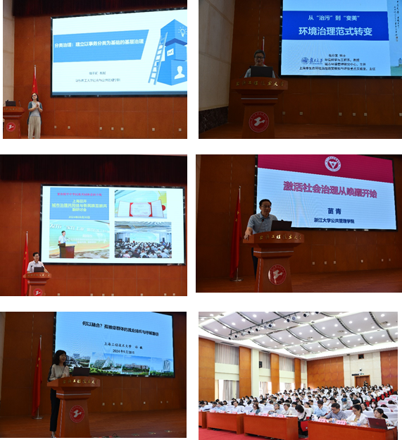 开幕式结束之后,进入上午的主论坛部分。主论坛由304am永利集团副经理邱梦华教授主持。五位专家学者围绕“城乡公共治理现代化”作了精彩纷呈的主旨报告。华东理工大学郭圣莉教授、华东师范大学高向东教授、复旦大学包存宽教授、浙江大学苗青教授、304am永利集团许敏的报告题目分别是“分类治理:建立以事务分类为基础的基层治理”“中国式现代化下各民族人口流动融居与区域治理研究”“从‘治污’到‘变美’:环境治理范式转变”“激活社会治理从唤醒开始”“何以融合?孤独症群体的就业排斥及纾解路径”。五位专家学者从不同的角度入手,呈现出目前城乡公共治理的发展貌,也对促进公共治理现代化提出了对策建议,让在场师生获益匪浅。