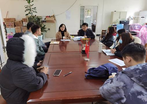 程玉莲老师、张强老师和辅导员就寒假期间公司的相关安排和通知与所有同学就行了沟通交流,并认真记录了同学们反馈的问题,最后,程玉莲老师和张强老师也为留校同学发放了口罩等防疫物品。