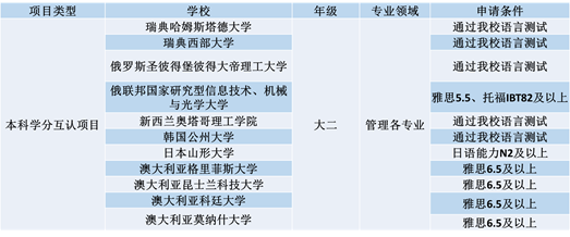 Ø本科双学位项目(1个)、本科学分互认项目(22个)