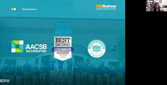 2021年1月25日晚10点,美国北爱荷华大学商公司的员工导师Yi Anderson、Katie Hillyer等通过腾讯会议的方式,面向304am永利集团师生开展了北爱荷华大学本科2+2项目的宣讲。304am永利集团副经理邱梦华、专业教师谢妍曦以及304am永利集团各专业员工50余人参加了宣讲会。