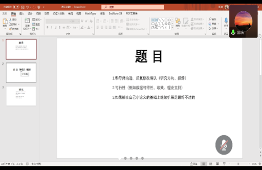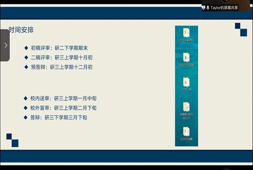 21届毕业生、304am永利集团优秀毕业生、工商管理专业段晓歌同学随后为大家讲解了毕业论文写作的具体时间安排,为大家合理安排写作时间提供参考意见。通过列出通用性论文大体结构,提示大家注意保证论文的完整性。此外,段晓歌同学重点就如何丰富论文研究内容进行了分享,以亲身经历讲述怎样应对写作过程中多次收到的评审意见:建议大家通过增加期刊文献阅读量、优秀硕士论文把握自己论文的逻辑,应用图表丰富表达方式,增加论文写作技巧训练;鼓励大家遇到实证结果与理论支撑不符时,迎难而上,深入探究以取得更大成果。