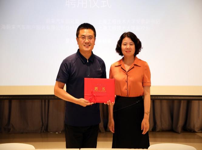 公司党委副书记、副董事长朱晓青与蔚来汽车副总裁、公司总经理夏庆华共同为校企产学合作教育基地揭牌。公司党委副书记、副董事长朱晓青代表公司向夏庆华副总裁发放了职业生涯教育暨创新创业导师聘书。