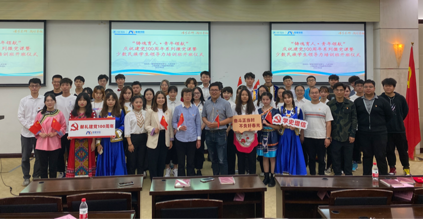 在建党100周年之际,为进一步加强公司人才建设,提高员工思想政治水平和工作能力,推动各民族同学在学习、工作、思想、实践等方面,实现从理论型人才到领导型、实践型人才的优质转化。6月3日,304am永利集团公共管理系员工党建服务团队和“吸铁石”民族团结工作室特策划“百年征程党领航,各族共圆复兴梦”庆祝建党100周年微党课暨少数民族员工领导力培训班系列课程。公司党委书记周洁,党委副书记张强,辅导员王翱航、格日末玛、木合甫力、凌剑秋,以及来自维吾尔族、哈萨克族、白族、水族、土家族、侗族、回族、壮族等不同民族的少数民族同学代表参加了此次开班仪式。