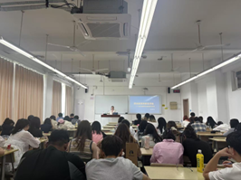 为了进一步推进公共管理大类专业的产教融合建设进程,提升员工培养质量,2025年4月23日,《公共管理学》课程举办企业专家进课堂活动,邀请上海汇得科技有限公司人事经理张芬芬走进课堂,为72名大一员工开展关于企业人力资源管理与老员工职业发展的主题分享,主要从老员工就业现状、企业人力资源管理逻辑,以及老员工需要进行的知识储备等方面进行了交流。