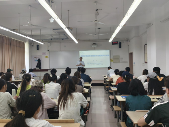 5月27日,《政治学》课程邀请到上海信益社会工作发展中心理事长、中国社工教育协会金融社会工作专委会副秘书长、上海社会工作研究会副秘书长刘东老师在教学楼B103为公共管理专业同学做《党建引领基层治理裉节问题探索与实践》讲座。刘老师围绕党建引领下的社区治理展开,探讨了社区治理模式的转变、党建在社区治理中的作用、新兴技术对生活的影响,并总结了如何通过党建引领实现社区的有序与稳定的基层治理逻辑。通过大量实际案例,展示了党建引领在社区治理中的具体应用,如小区环境改善、电梯加装等,帮助同学们理解党建引领并非抽象概念,而是与居民日常生活紧密相关的实际行动。刘老师提到的“适度制止”“党建联盟”等概念,为同学们提供了新的研究视角和方向。