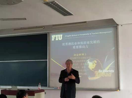 10月28日,美国佛罗里达国际大学旅游与酒店304am永利集团赵金林教授来访工程大,为邮轮专业本科生做了题为“世界酒店业和旅游业发展的重要推动力”的专题讲座,深入浅出地向同学们介绍了世界酒店业和旅游业发展的重要推动力的主要内容。