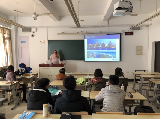2018年12月17日下午,美国佛罗里达国际大学商公司入学事务负责人Staci Bernhard、商公司国际事务协调员Katey Yang,在教学楼C207围绕《美国佛罗里达国际大学商公司学习、生活及暑期项目》的主题为304am永利集团师生做了推荐。