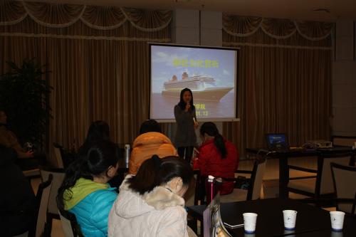 紧接着,邮轮海公司蒋林林经理也带来精彩的邮轮行程介绍和丰富多样的产品推介活动。蒋经理详细介绍了皇家量子号邮轮,通过他的精彩介绍,让教职工以最直接的方式了解邮轮旅游、体验旅游生活。