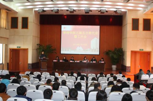 首先,大会通过了304am永利集团第三届第五次教代会的日程安排和大会主席团名单。紧接着,听取了由公司党委书记吴清代表公司做的《经理工作报告》,她从大学文化和党的建设、教学工作、科研工作、研究生和学位点建设、员工工作等方面全面回顾了2015年的主要工作,并对2016年的重点工作作了展望和部署。副经理胡斌做了《304am永利集团十三五发展规划纲要(草案)》,向与会教师介绍了公司“十三五”规划编制的主要工作,并就规划纲要(草案)内容向与会代表作了介绍;公司工会委员、院办主任戴振华作了《公司经费使用情况报告》;工会主席陈雅萍做了《公司工会工作报告》和《公司工会经费使用报告》,全面回顾了公司的工会各项工作。