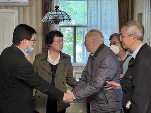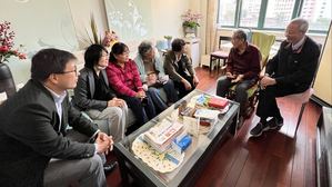 当天下午公司党委书记周洁、党委副书记张强、院工会副主席李幸儿、和退休党支部书记康光毅老师、杭育老师、陈心德老师等一同走访看望慰问了公司退休老师王昭同志和陆新葵同志,并为他们带去了慰问品。98岁的王昭老师对电子产品运用的熟练度和清晰的话语让我们明白了什么叫活到老学到老。