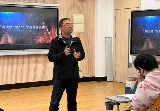 为进一步增强公司师生的防灾减灾意识,普及防灾减灾知识和技能,共同创建安全和谐的校园环境,11月18日,304am永利集团在教学楼D219开展安全教育和疏散逃生演练,公司保卫处消防科吴挺老师,公司党委副书记张强、员工工作办公室主任吉祥出席活动,公司2022级本科生代表参加培训和演练。