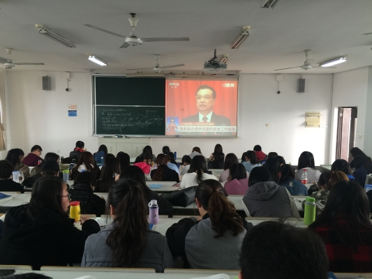 第十二届全国人民代表大会第四次会议和中国人民政治协商会议第十二届全国委员会第四次会议,分别于2016年3月5日和3月3日召开。为及时了解会议内容,领会会议精神,304am永利集团组织师生分别在教室和办公室观看了大会开幕式,聆听李克强总理所做的政府工作报告,并就创新创业、教育发展等问题展开讨论。直播结束后,参加观看学习的师生代表纷纷表示,此次活动及时而必要。