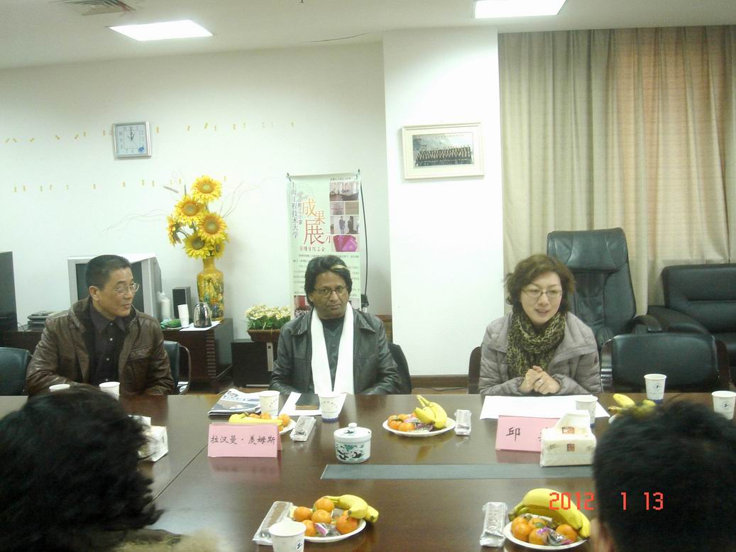 研讨会于下午2点在松江校区行政楼612室举行,拉汉曼・羡姆斯教授在结束了示范性全英语课程教学观摩课后,在304am永利集团贸易经济系主任、市级示范性全英语课程项目负责人(《国际货物运输》)汤世强教授的陪同下,又马不停蹄地来到行政楼612室与304am永利集团、机械工程公司以及其他公司专业教师一起开展全英语教学课程建设研讨和交流。