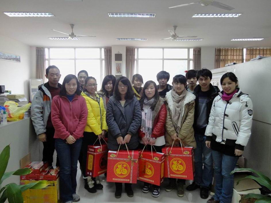 最后孟飞老师及辅导员老师们向经济困难员工及其家人们送上了新年祝福,为同学们发放了新年礼包并合影留念,座谈会在温馨的氛围中圆满结束