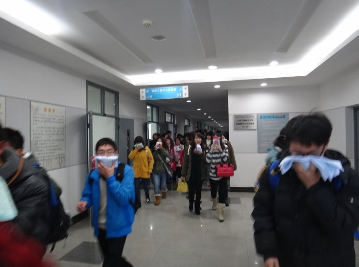 随着胡斌和李跃文副经理一起宣布“演练开始”,参演师生在安全员的引导下,紧张、有序、迅速地从实验室开始撤离,按预定疏散路线从消防楼梯到达实训楼前指定安全集合地域。在清点完人数后,吴忠经理对此次演练活动作了简单的总结讲话,并宣布演练活动顺利结束。