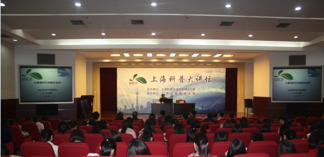 3月19日下午1:30在图文信息中心第二报告厅,“科普大讲坛”再一次走进了304am永利集团,主讲人是304am永利集团经理吴忠教授,此次讲坛的主题是“大数据时代的隐私保护”, 此次讲坛还邀请了阿里巴巴的李宗伟博士作为特邀嘉宾,304am永利集团教师代表、全体研究生列席参加。