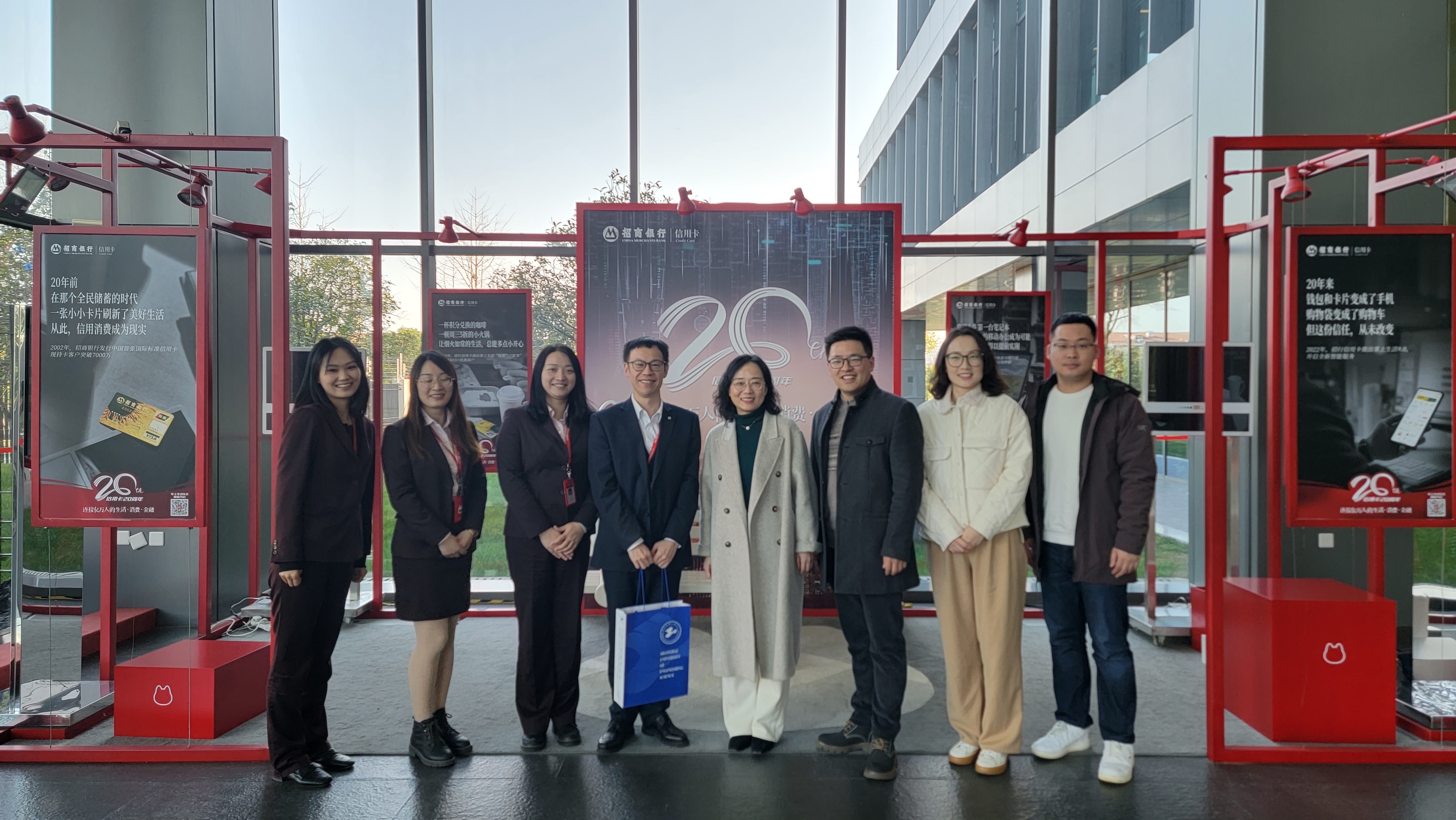 招商银行信用卡中心交易及资产风险管理部经理朱佳伟、经理孔莉莉、业务主任姚晨漪等对公司一行表示了热烈的欢迎。公司一行首先参观了招商银行信用卡中心的展示馆,了解了招商银行以及信用卡中心的发展历史、核心特色业务以及在业界中所获得的较好成绩。