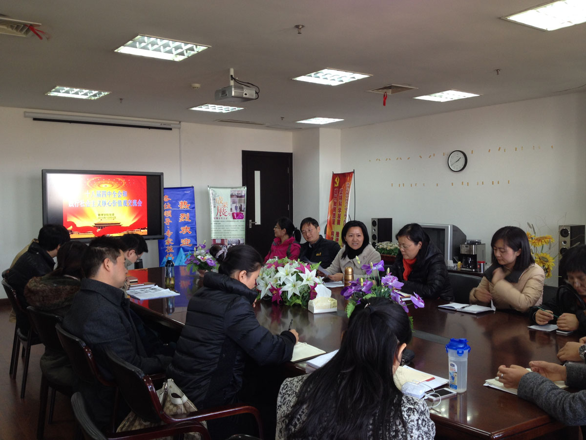 2014年12月4日,为了纪念我国第一个“国家宪法日”,深入推进公司教师学习贯彻党的十八届四中全会精神,以从法治提高师德修养层面教育引导老员工群体培养和践行社会主义核心价值观,公司举办以“学习十八届四中全会精神,践行社会主义核心价值观”为主题的教师座谈会暨纪念首个“国家宪法日”活动。公司党委书记吴清老师、副书记范君晖老师及各系室的教师代表参加此次活动。活动由党委副书记范君晖主持。