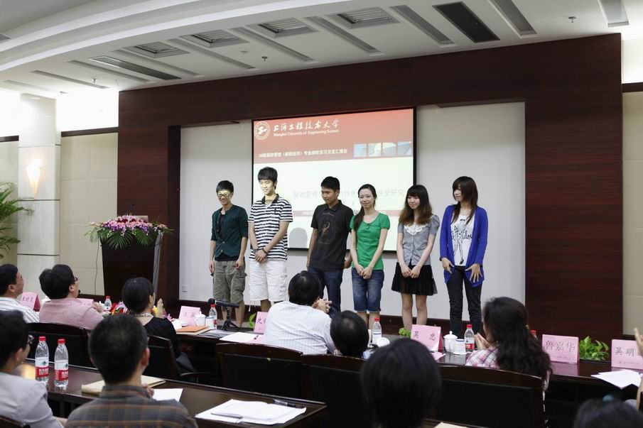 会上,各邮轮小组的组长就实习考察的内容向评委做了PPT汇报交流。徐俊杰同学以《设计装修的风格与特色对海洋神话号品牌的影响研究》为切入点对邮轮进行了讲述;府宇樵和卜路同学分别从海洋神话号的客房和餐饮角度进行了《客房管理与服务的特色与游客感知研究》和《餐饮管理与服务的特色与客人感受研究》的演讲;游越和崔�峦�学和大家探讨了关于《船上活动安排与组织的有序与游客的评价研究》以及《岸上旅游活动安排的特色与游客感知研究》;袁骢同学特别采访了多位海洋神话号的员工,为大家作了《员工构成对海洋神话号独特风情与文化构成的影响研究》的报告。六位组长分别把自己在海洋神话号上的种种美妙感受通过PPT的形式展现在在大家面前,获得了评委们的高度认可。
