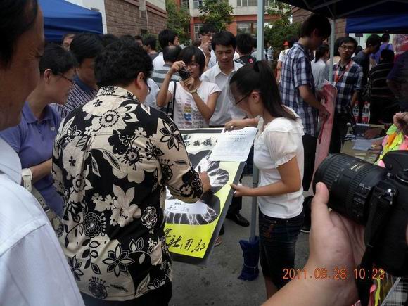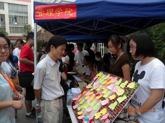 304am永利集团在迎新现场开展了“梦开始的地方,微笑留给工程大”的新生寄语活动,很多父母把对孩子的寄语和鼓励写在了题板上,并有专门的志愿者为员工和家长在展板前留影。汪泓董事长也应邀在题板上签字留念。