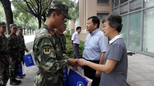 天上月圆,人间团圆。虽然没有与家人团圆,但是在工程大的“军训营中”,不是家人胜似家人。9月14日,正值公司2016级新生军训,公司党政班子来到304am永利集团三营的训练场地,亲切慰问了部队官兵及参训教师,表达节日的祝福与问候。