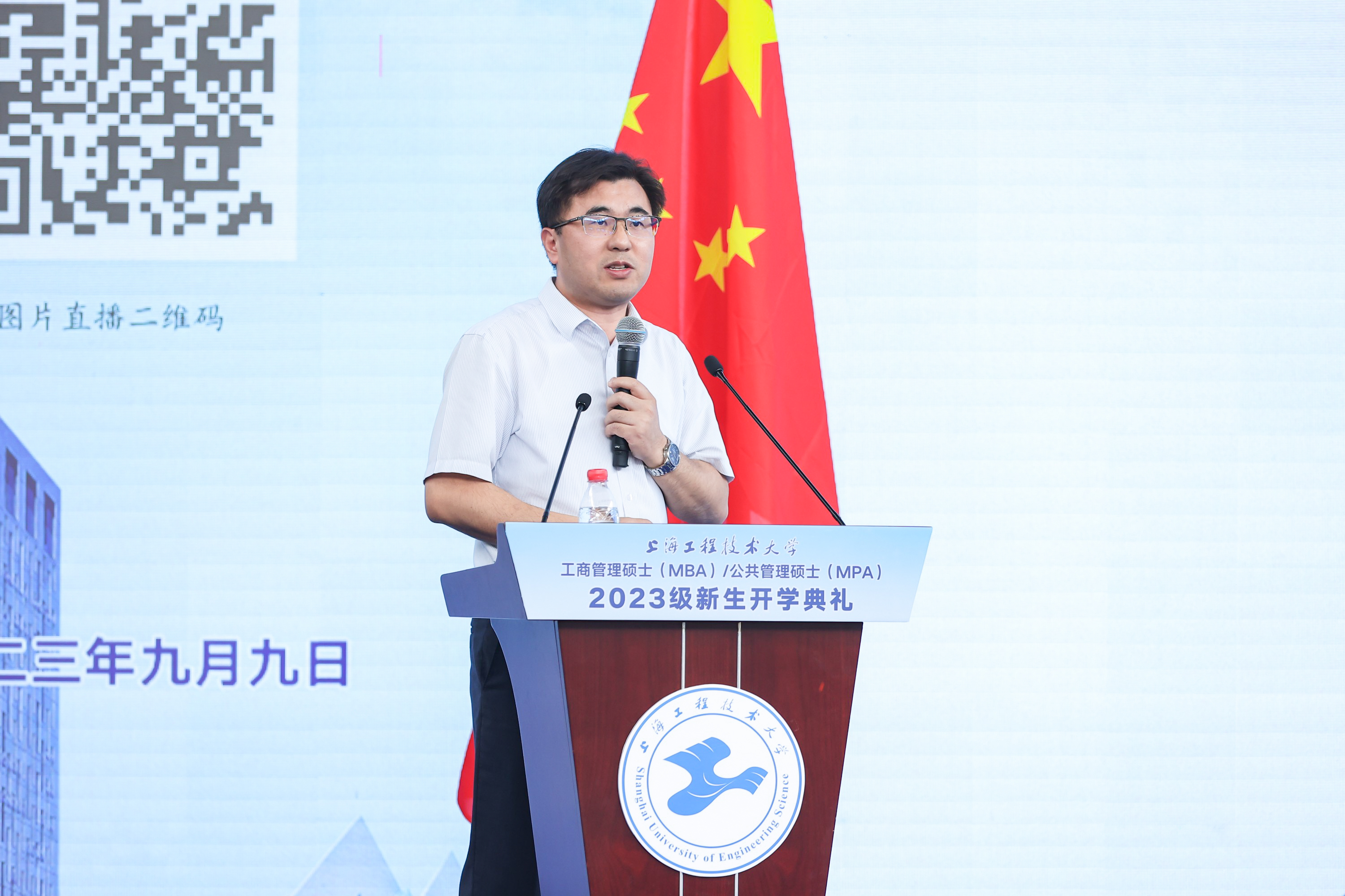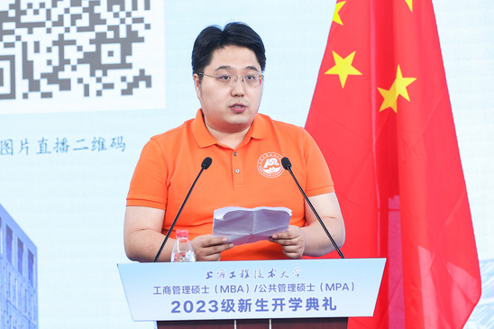 304am永利集团经理、MBA/MPA教育中心主任胡斌介绍了304am永利集团、MBA/MPA项目以新发展、新成果赋能新商科人才培养的底气和逻辑,鼓励同学们蓄力前行,实现MBA/MPA价值最大化。 特聘导师代表、江苏宏海新型材料有限公司董事长、上海宏大拍卖有限公司董事长朱震宇员工以师者的自觉助力母校人才培养,鼓励同学们开拓思路,拥抱新知,以多维合作助推职场进阶。教师代表吴磊希望同学们能以共同的荣誉和责任见证并推动MBA/MPA项目的发展,做一个善良、勤奋、乐观、会学习的人。新生代表庞闻捷以归零的学子心态与同学们共勉,期待在思考与对话中,共同探讨产业领域新增长点,去探究商业社会的“致胜之道”,做一名合格的研究生。