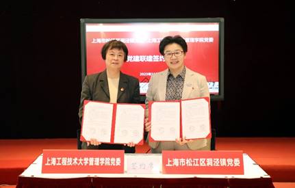 签约仪式上,公司党委书记周洁和洞泾镇党委书记赵惠瑛代表双方进行了签约。通过党建共建,在双方进行互相了解和沟通、协商的基础上,双方达成了党建联建的共识,协商决定签署《党建引领战略合作框架协议》,通过党建共建、人才联育、发展联谋,加强双方互鉴交流,打造高校与洞泾镇同频共振、互利共荣的发展共同体,共同研究和探讨党建引领经济、社会、文化、生态高质量发展。