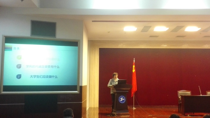周洁老师首先带领大家回顾了《中国共产党章程》和中国共产党的发展壮大的历史,让同学们了解中国共产党作为执政党的先进性,为预备党员明确了预备期的重要性和必要性,为入党积极分子明确了努力的方向;紧接着,周洁老师列举了新时期优秀共产党员的例子,并讲解了新时期优秀共产党员的标准,对预备党员提出要用优秀党员的标准严格要求自己,对入党积极分子提出要“未入党的门,先做党的人”;最后,要求各位同学要结合自己的学习和工作实际,以迎评为己任,在争创优良学风中发挥带头作用,争做表率。周洁书记围绕“本科教学审核评估是什么”、“ 学风的内涵和要素”以及“老员工们应当做什么”三大视角展开课程。她指出:学风建设是永恒的话题,发挥员工党员和入党积极分子的先锋模范作用,营造良好的学习风气与氛围,以良好的面貌迎接本科教学审核评估。