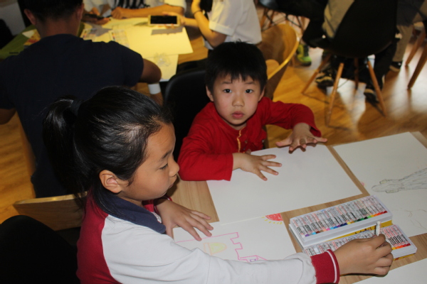在活动正式开始前,高兴刚老师带领同学们做了简单的热身运动,破冰之后给同学们布置了第一轮的绘画任务:画一个随机的物品。同学们的作品各有不同:有的同学在画纸上勾勒出了一个精致的魔方,有的同学在画纸上画了一棵别致的红色的树,还有同学三两笔画下几只可爱的动物。在第二轮绘画之前,高老师引导大家进行了放松训练,通过言语引导大家进入一个充满幻想、引人遐想的故事,有些同学想象到了光球、草地等美好的景象。随后老师向同学们布置了第二轮的绘画任务:画自画像或者想象一下故事中的宝箱里的物品。同学们兴致越发浓厚,很认真的完成着自己的画作,这一幕还吸引了两位小朋友前来参与。